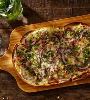 Flammkuchen, ook bekend als "tarte flambée", is een specialiteit afkomstig uit de Elzas-regio. Het deeg voor de Flammkuchen bestaat uitsluitend uit hoogwaardige Elzasser Weissen Mehl (de lichtste bloem ter wereld), water, koolzaadolie en een snufje zout. Het deeg is puur natuur en bevat geen chemische bestrijdingsmiddelen, additieven of gist. Het resultaat is een lichte, krokante en verslavend lekkere Flammkuchen. U kunt hem beleggen met uw favoriete hartige of zoete toppings. Het is ideaal als lunch, een hapje bij de borrel, enzovoorts.