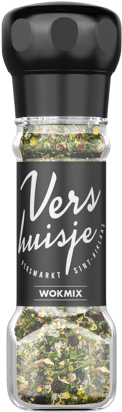 Zout, zwarte peper, witte peper, koriander, knoflook, venkel, basilicum, zonnebloemolie