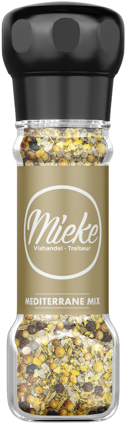 Zeezout, rode peper, zwarte peper, pili-pili, mosterd, groene paprika, ui, gerookte paprika, koriander, knoflook, rozemarijn, laurier, komijn, zonnebloemolie