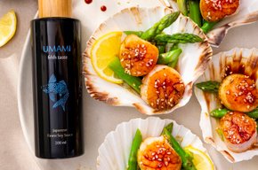 Umami sojasaus heeft een unieke smaak die niet op de markt verkrijgbaar is en volgens eigen receptuur wordt geproduceerd. Het versterkt en intensiveert de smaak van het gerecht waarmee het wordt gecombineerd zonder haar identiteit te verliezen.