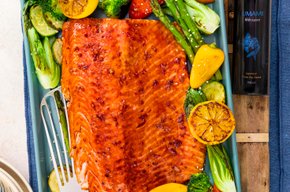 In Umami gebakken Zalm met geroosterde Groenten
