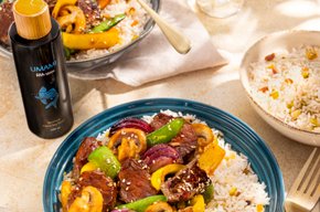 Umami Rundvleesreepjes met Groenten en Notenrijst