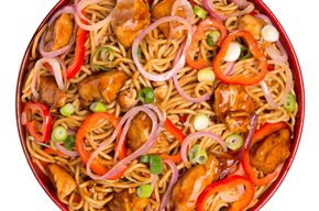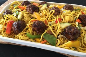 Singapore Noedels met Gehaktballetjes in Ketjapsaus
